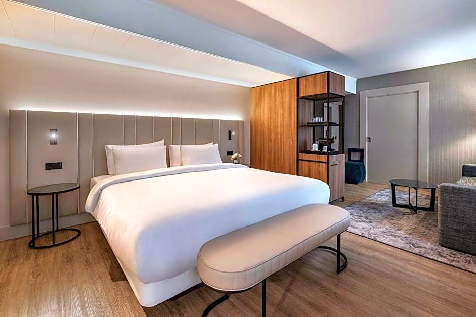 JUNIOR SUITE CAPACITY 1 is 194 square feet and includes either a king-size bed 150-183 width or a queen-size bed 150-154 width.