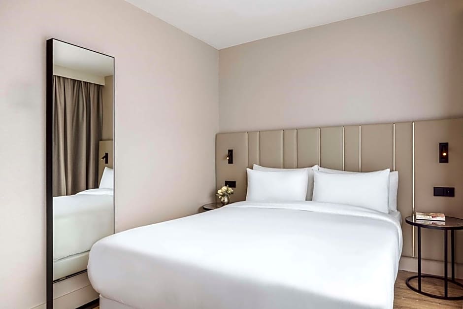 DOUBLE STANDARD is 215 square feet and includes either a queen-size bed 150-154 width or 2 single beds 80-130 width and is Wheelchair-accessible.
